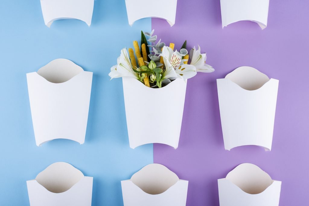 Paper cups as a liquid barrier to prevent soaking.