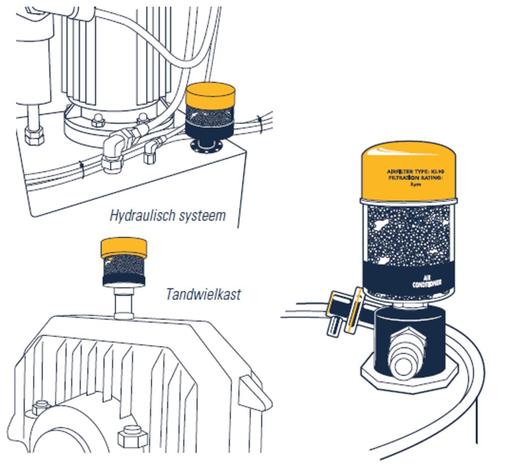 Hydraulische en smeeroliën moeten vrij worden gehouden van contaminatie en water. De meeste reservoirs moeten in staat zijn te ademen, waardoor waterdamp en vaste deeltjes in de olie terecht kunnen komen. Temperatuurschommelingen in het reservoir resulteren in condensvorming wat niet alleen leidt tot oxidatie van de oliën, maar ook tot mogelijke aanzienlijke mechanische schade. Beluchters voorkomen vocht en vuil in systemen en met olie gevulde drums.
